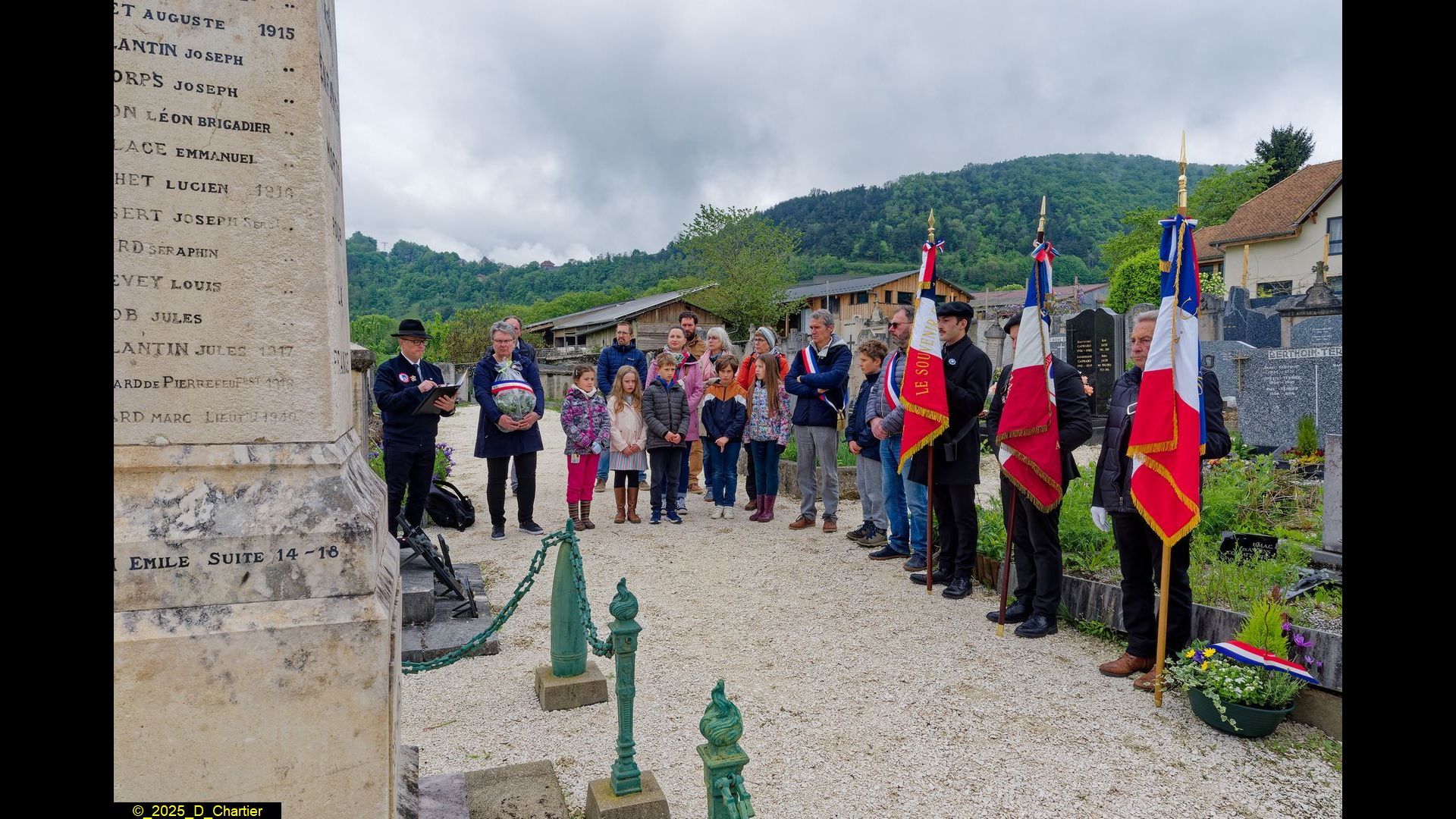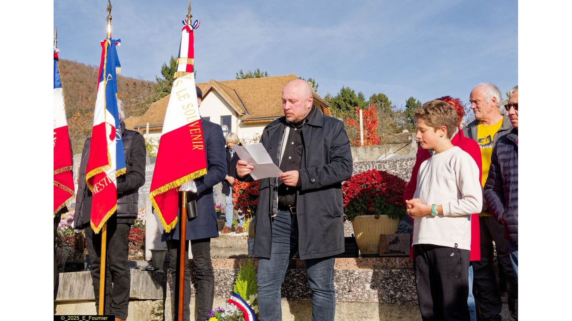 Les participants se sont donnés RDV à 10h devant la mairie. Puis le cortège s’est rendu en musique jusqu’au cimetière. Après la lecture du message du ministère des armées, l’écoute du chant Larmes d’Ivoire d’un enfant en l’honneur des pères partis au combat sans jamais revenir, un hommage aux morts a été effectué. La composition florale (réalisée par la maison Tontine) a ensuite été déposée au pied du monument. Puis l’appel aux morts, la sonnerie, et une minute de silence a été respectée. L’hymne national est alors entonné et la cérémonie s’est conclue avec les remerciements des porte-drapeaux par les officiels.Le Maire a ensuite remercié les participants pour leurs présences.
