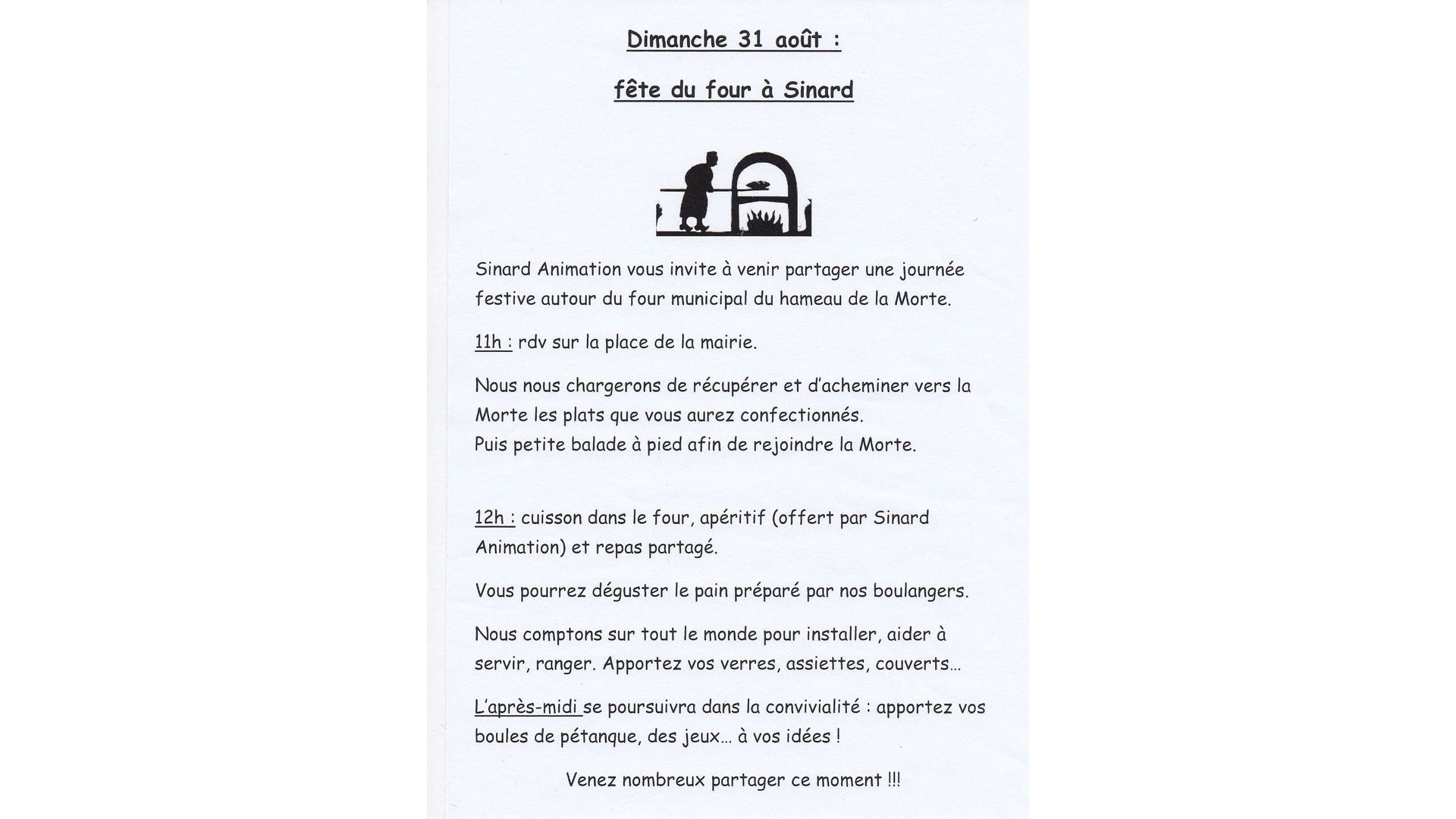 Dimanche 31 août 2025, c’est un soleil radieux qui a accompagné cette belle journée autour du four du hameau de La Morte, organisée par Sinard Animation – au programme :