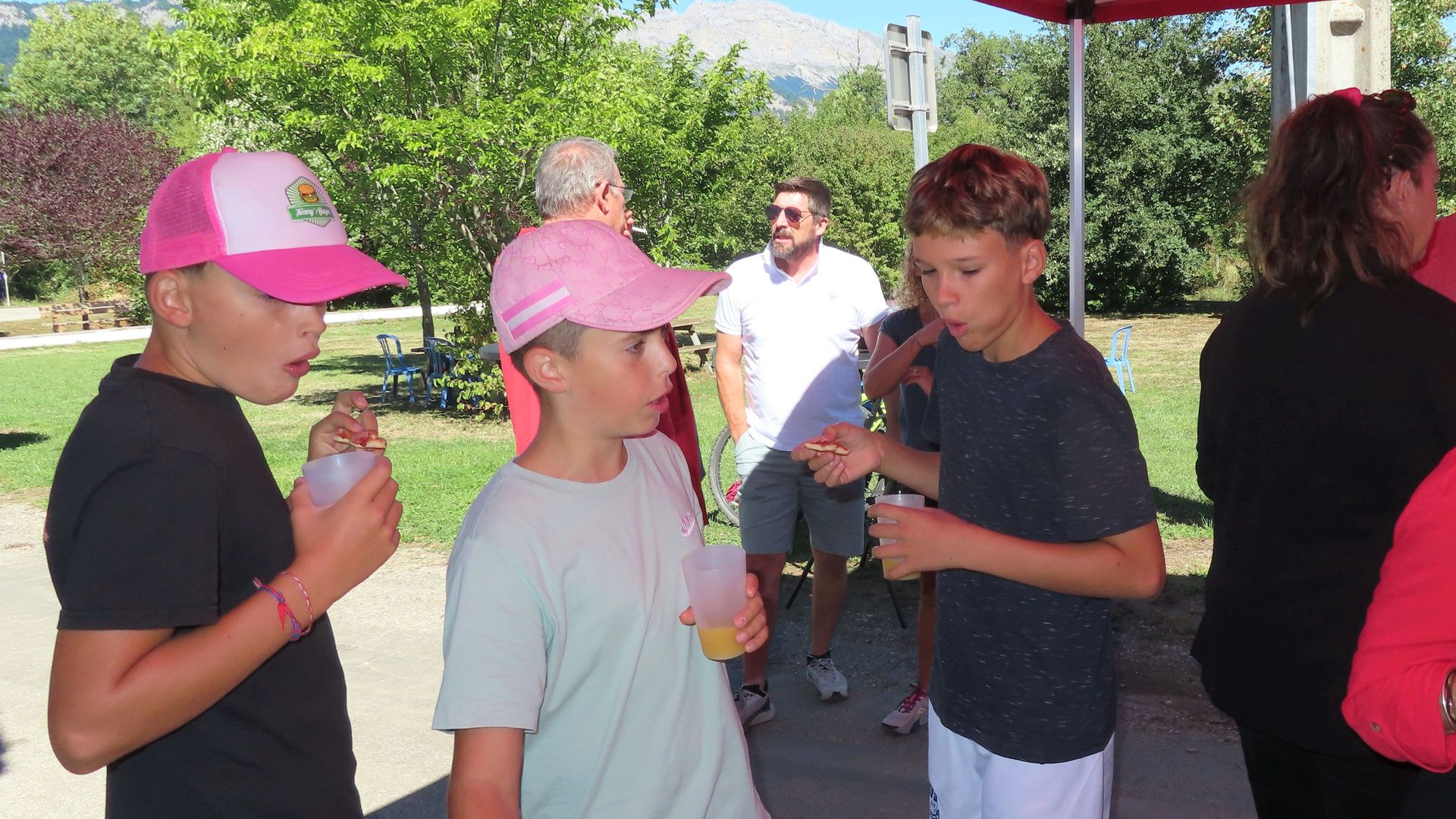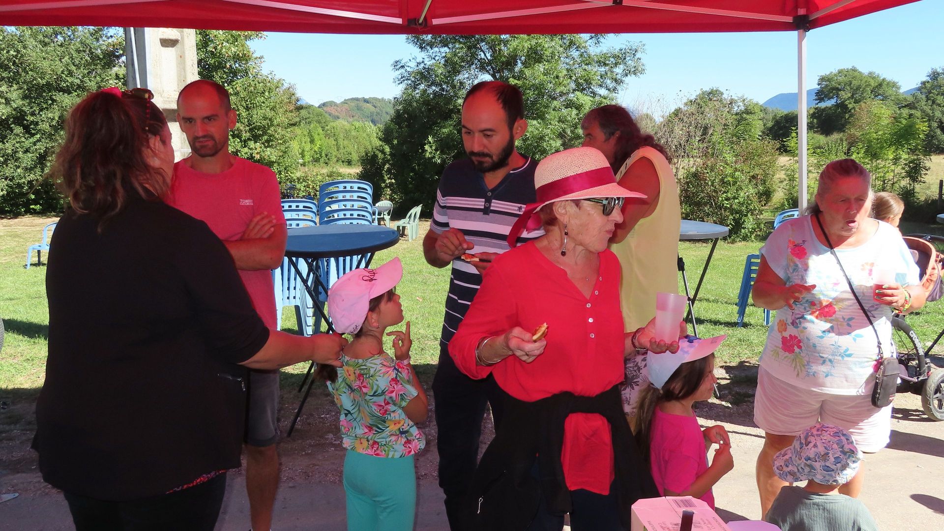 … le ruban tricolore a été coupé, libérant les Sinardouces et les Sinardoux qui ont pu déguster les petits fours et autres amuse-bouches de JS-Traiteur autour du verre de l’amitié, accompagnés par le groupe folk Maz’Folk, tout cela sous un soleil radieux.