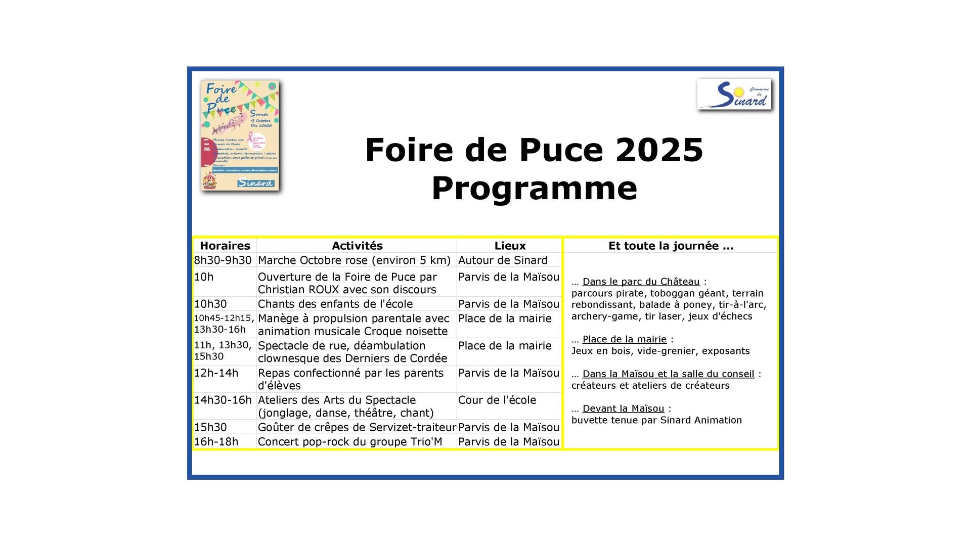 Le programme de cette Foire de Puce figure au début du diaporama ci-dessous.