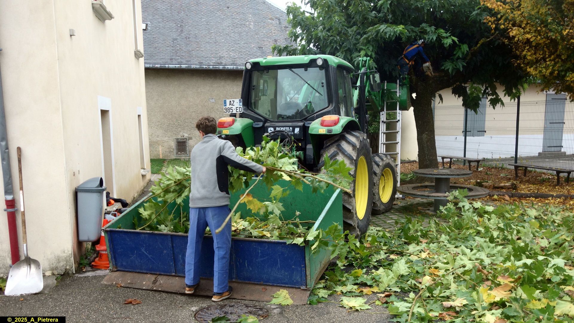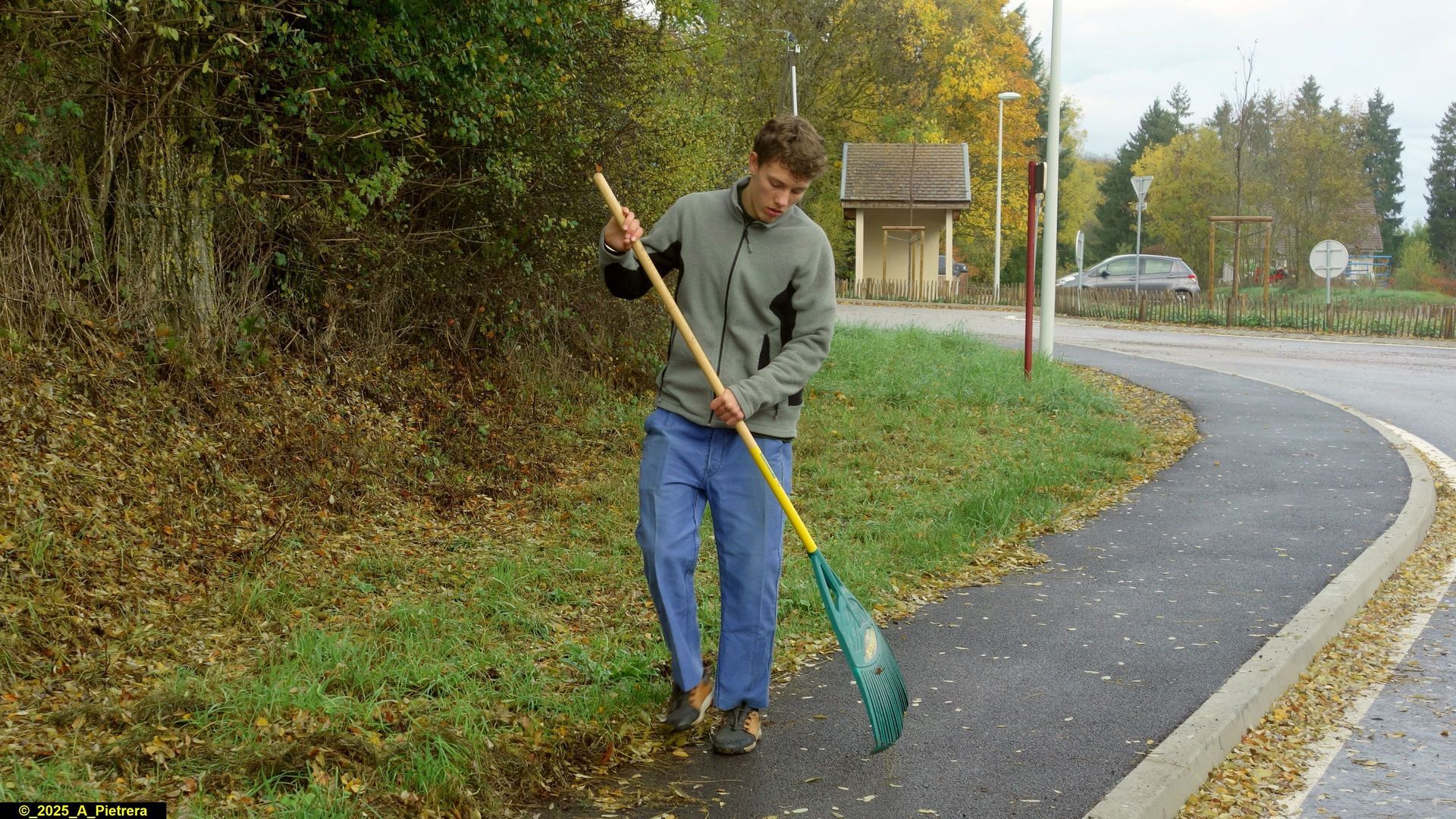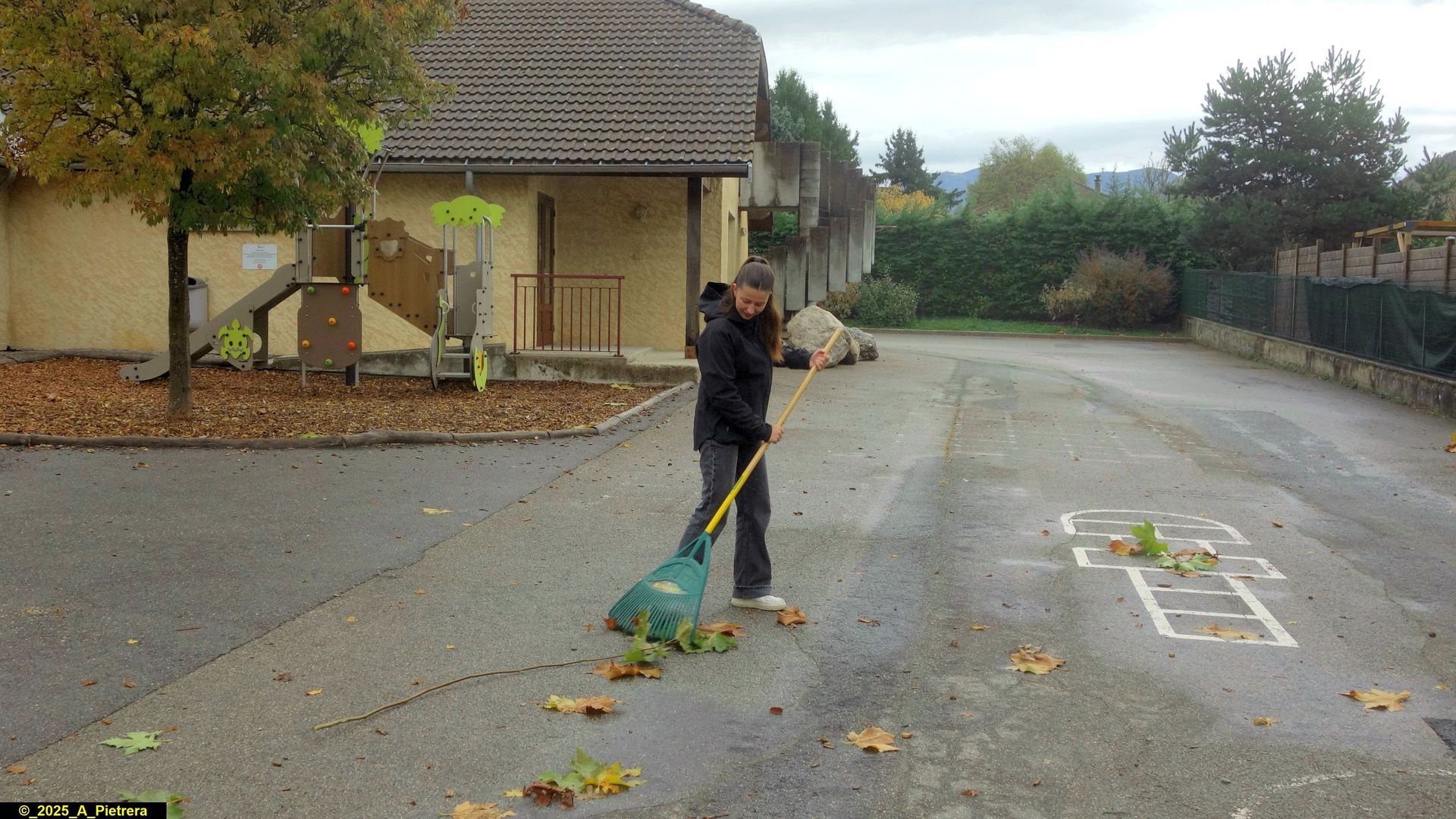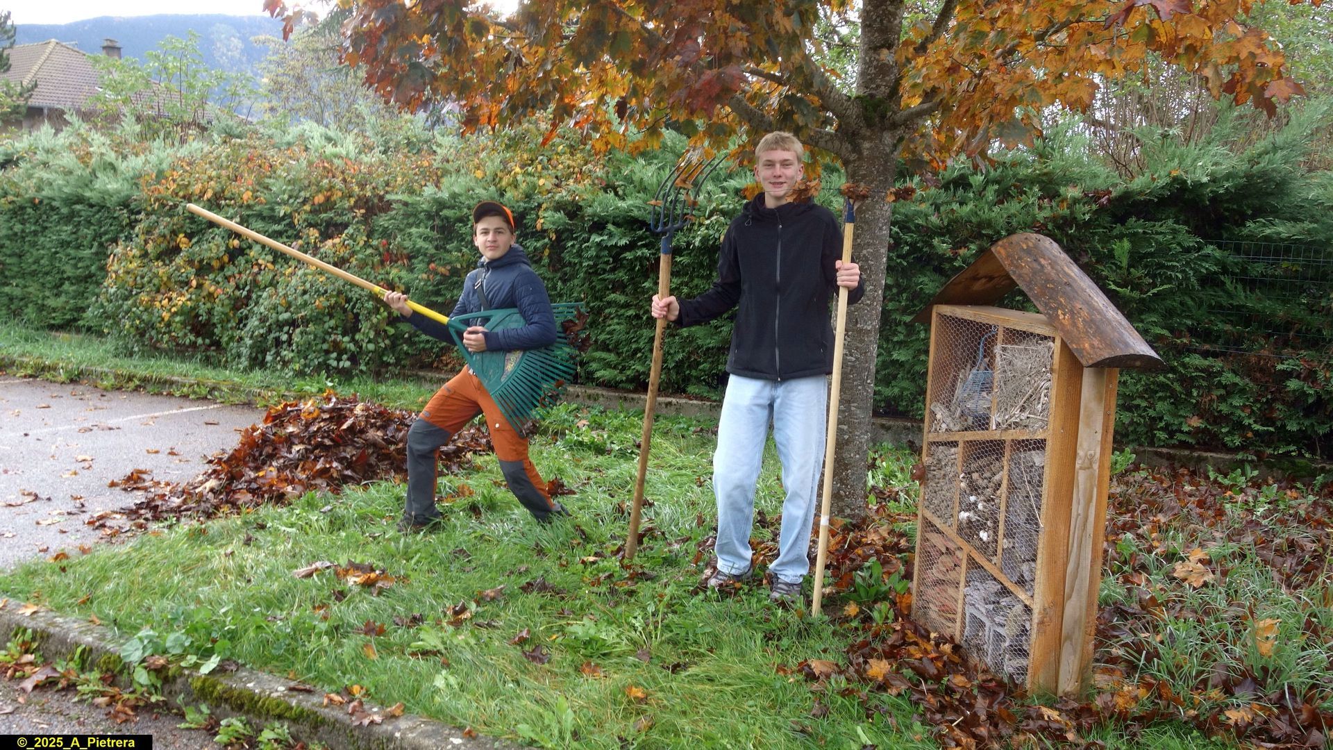 - ramassage des feuilles dans la cour de l’école et sur le cheminement piétonnier qui mène à la croix de Portier,
