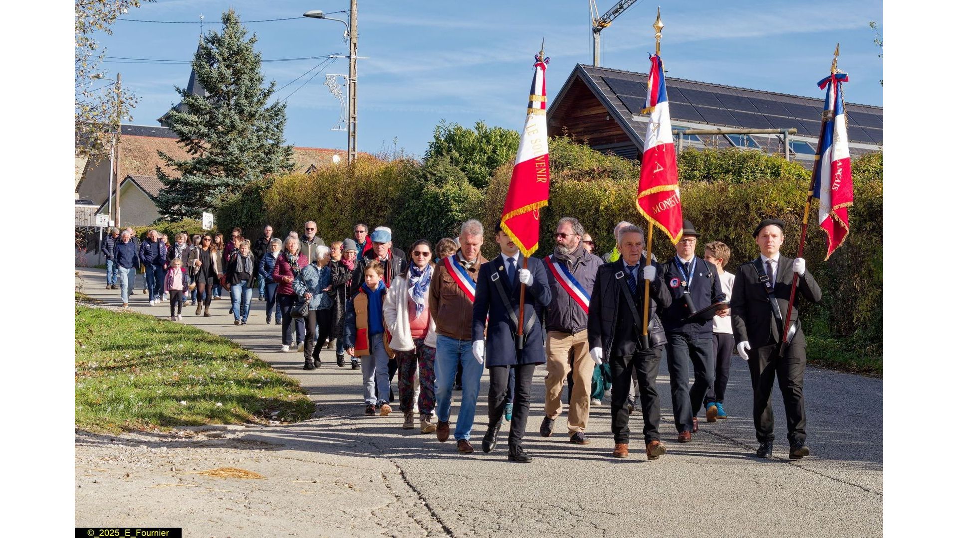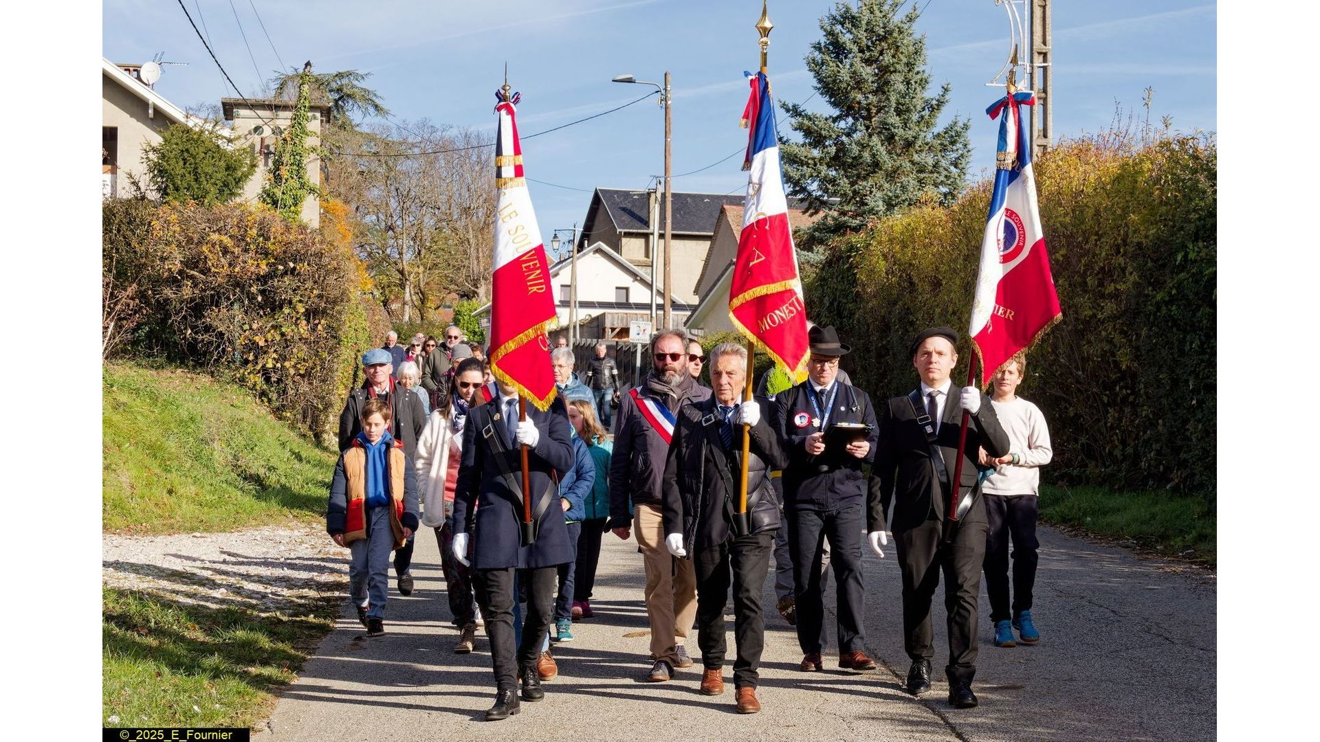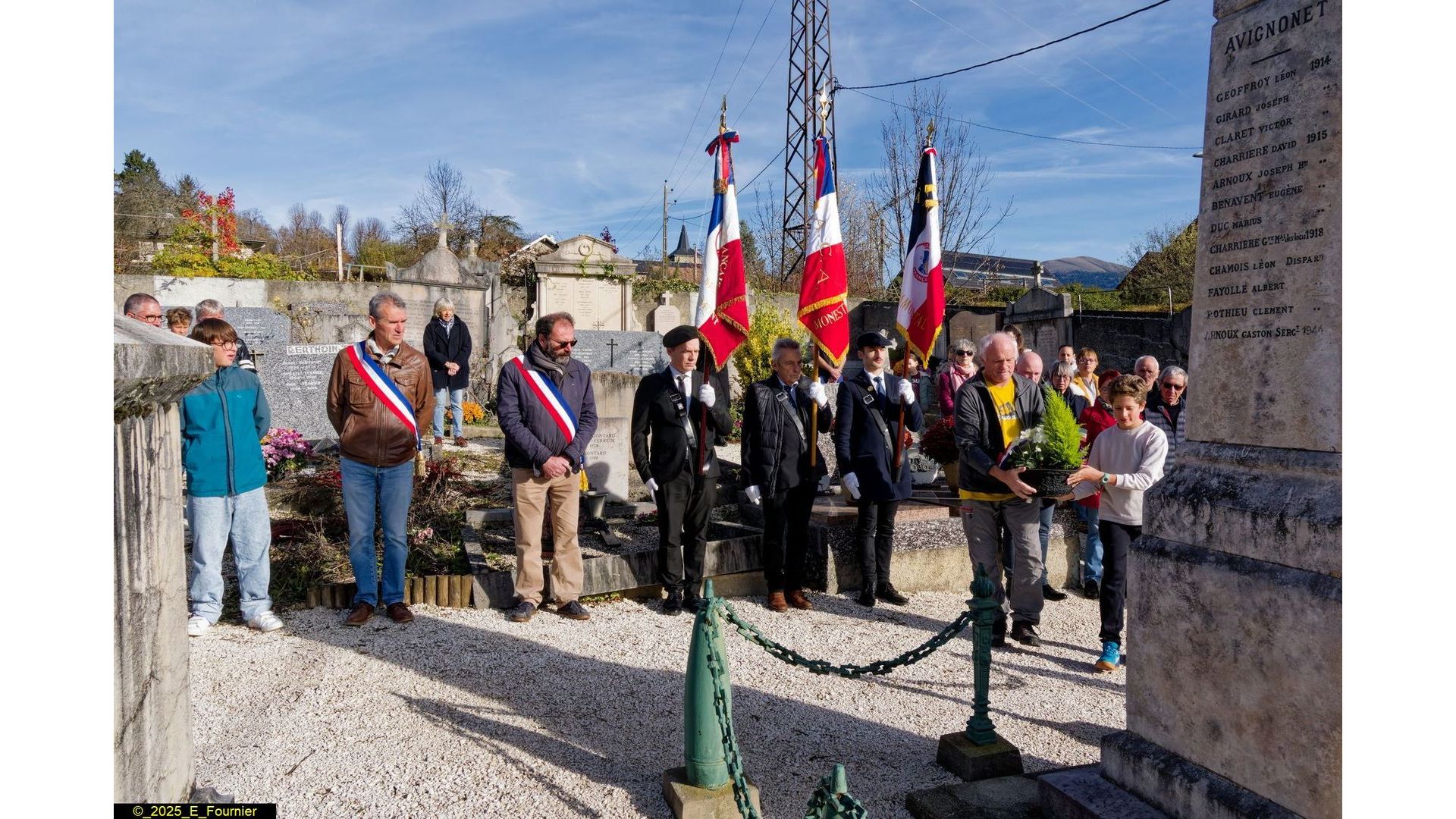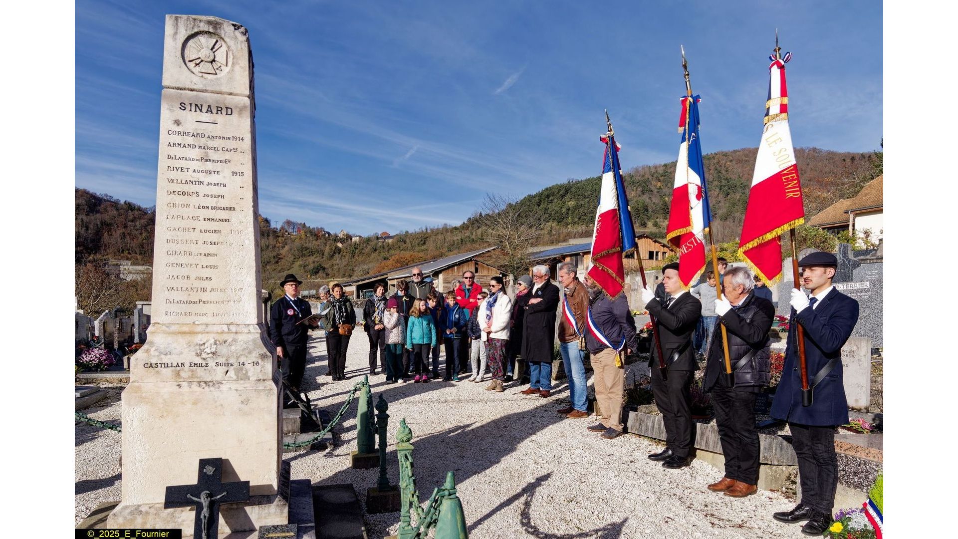 La cérémonie du 11 novembre s’est déroulée depuis la place de la mairie de SINARD jusqu’au monument aux morts du cimetière inter-communal d’AVIGNONET et de SINARD, en présence de :