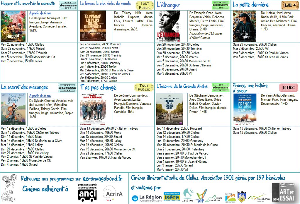 - en dehors des lundis, d’autres projections sont également réalisées dans de nombreuses communes du Trièves, dont nos proches voisines,