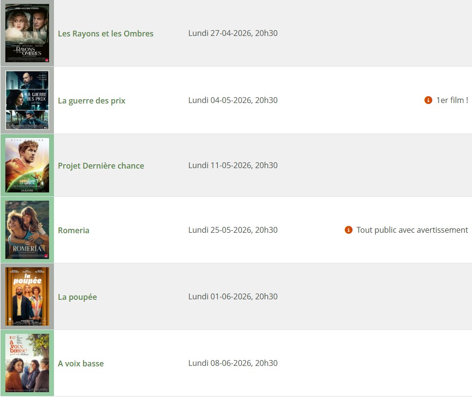 • en dehors des lundis, d’autres projections sont également réalisées dans de nombreuses communes du Trièves, dont nos proches voisines,